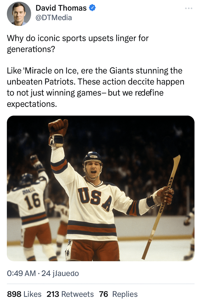 My upcoming Medium article explores why underdog upsets stay in our memory forever.